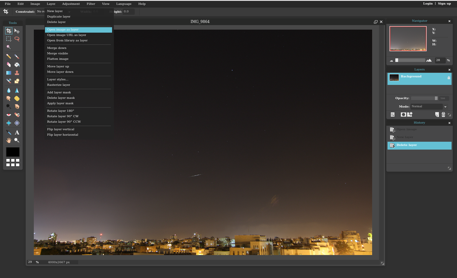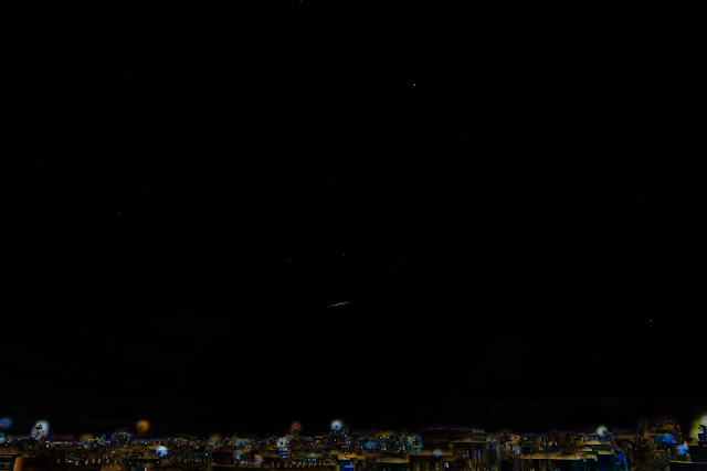 This is the second photo. The flare is already gone which is even better for us (it improves the subtraction). The stars disappeared (except the really bright ones) and the city lights looks bigger.
